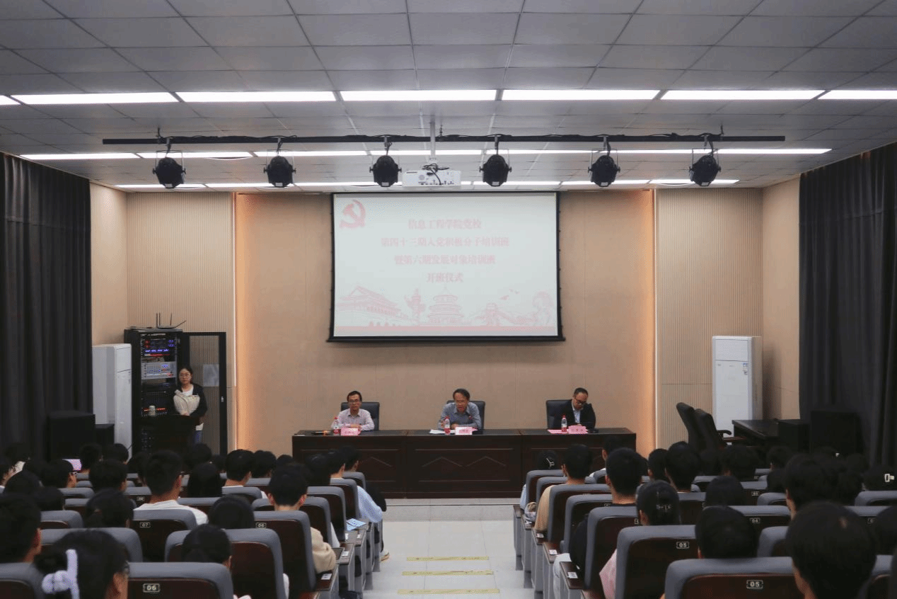 5月6日,信息工程学院于教五栋108报告厅举行分党校第四十三期入党积极分子暨第六期发展对象培训班开班典礼。信息工程学院党委书记、信息工程学院分党校校长何仲坚同志、学院党委副书记冯荣刚同志、学院党委组织员王业贵同志出席此次开班典礼。本次典礼由学院党教中心主任黄丽丹主持,培训班150名学员参加。