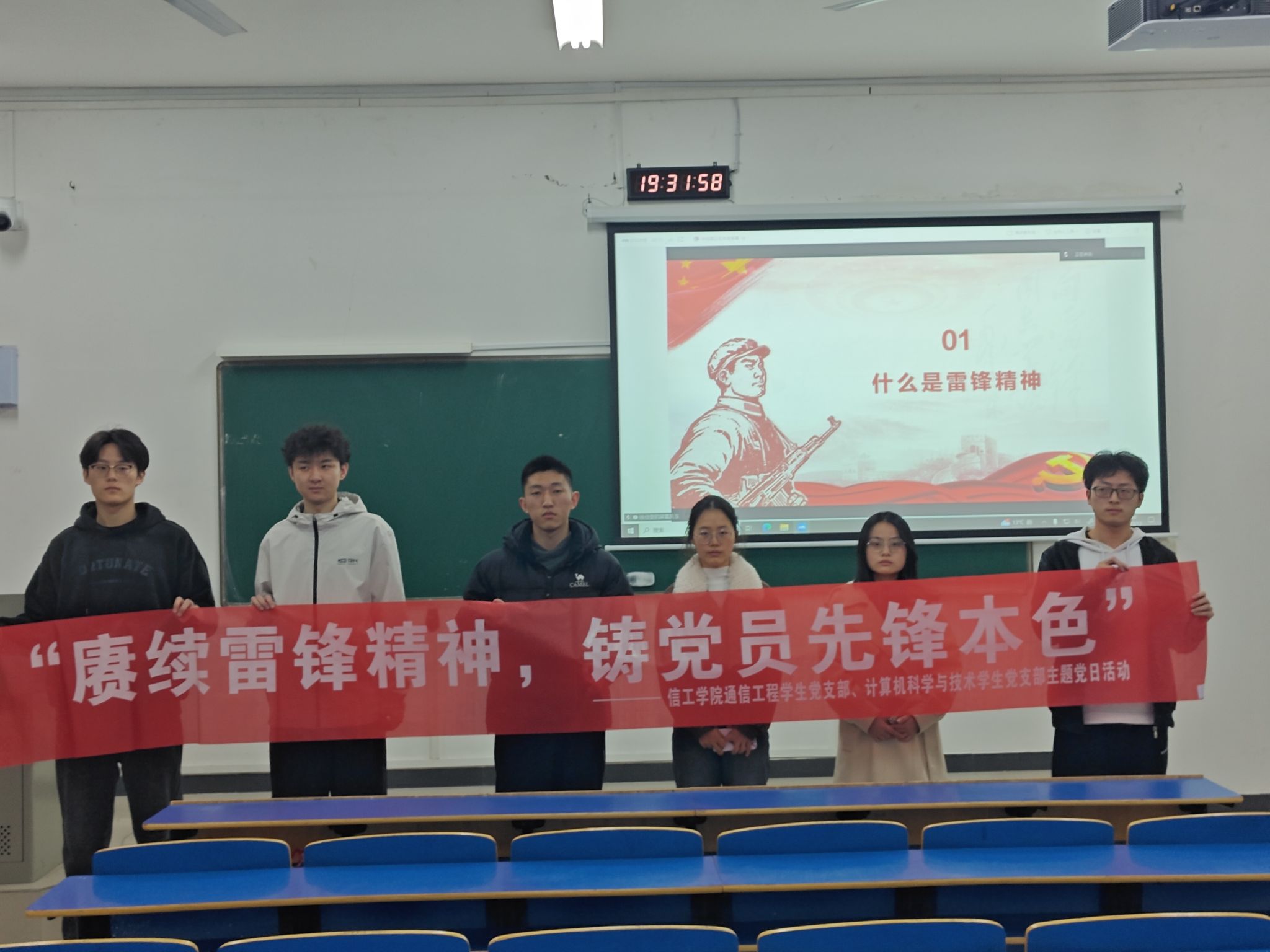 通信工程学生党支部、计算机科学与技术学生党支部与青年志愿者协会联合举办“赓续雷锋精神,铸就党员先锋本色”主题党日活动。
