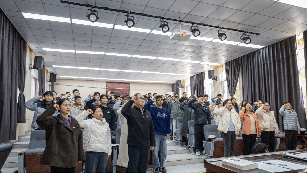 活动中,冯荣刚带领支部师生党员重温入党誓词,庄严的宣誓声进一步坚定了全体党员的理想信念与初心使命。