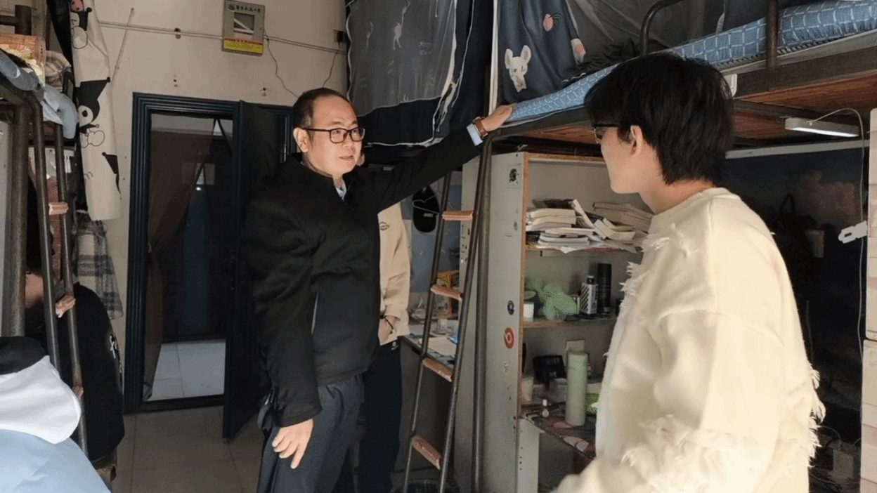 26日上午,冯荣刚一行前往学生宿舍进行走访慰问,与同学们亲切交谈,询问学生学习生活状况、思想状态、宿舍条件与实际需求,叮嘱同学们要树立安全防范意识,注意用电安全、消防安全,保持宿舍整洁卫生,养成良好生活习惯。