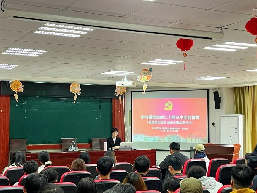 研究生宣讲团成员为全体研究生党员和入党积极分子作党的二十届三中全会精神宣讲报告。
