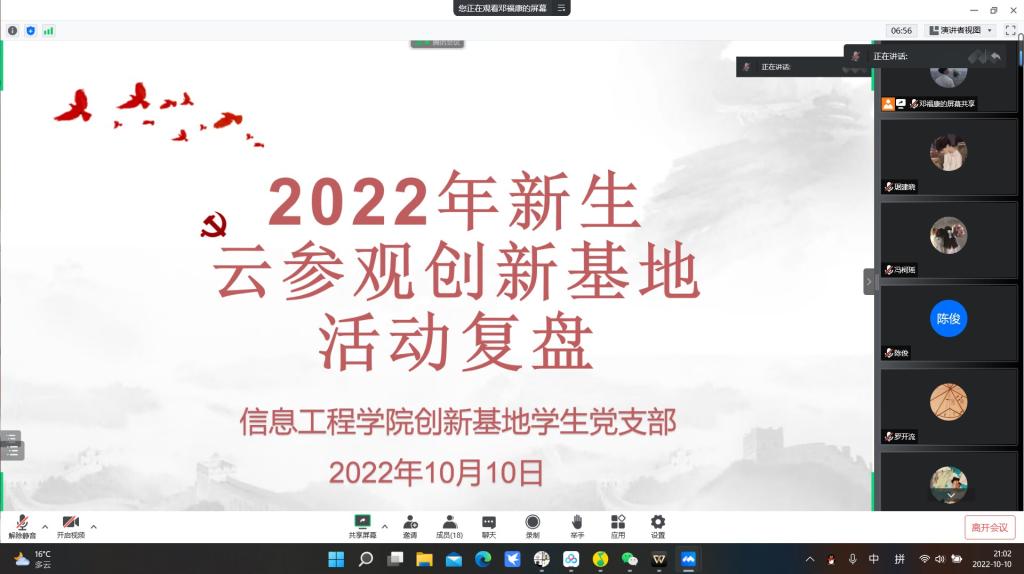 宣讲同学以ppt、现场视频展示的方法,一边介绍了各个实验室的主要学习方向、研究内容以及课外科技活动等情况,另一边也为2022级同学解答对实验室的疑惑。在云参观活动临近末尾,许多同学都表示出对创新基地开放实验室很感兴趣,纷纷加入实验室招新群,为之后的招新开始做准备。