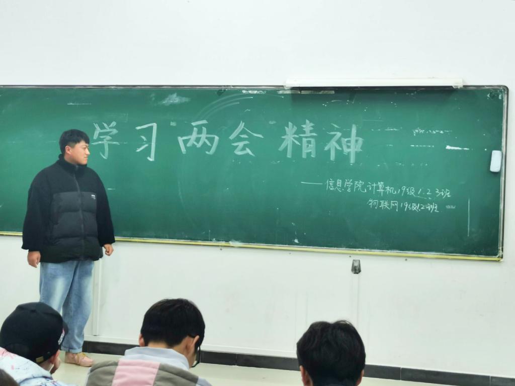 为认真学习贯彻“两会”精神,增强大学生的思想政治理论素养,3月5日,信息工程学院19级计算机专业与物联网专业于逸夫楼206室共同开展“两会”精神学习分享会,计算机2班团支书杨愉担任本次班会主讲人,计算机、物联网专业全体同学与会。
