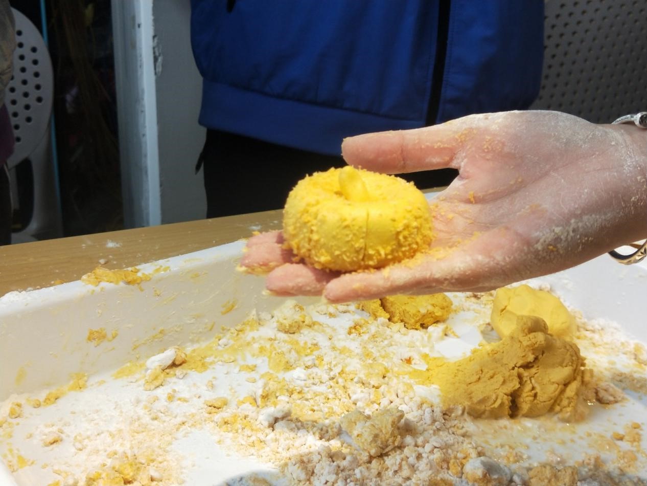 同学们制作手工南瓜饼