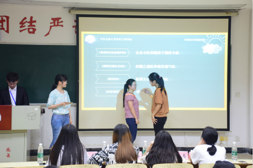 本次比赛分为必答题、抢答题、风险题、法律情景剧演绎、案例分析五个环节,前四个环节采用累加积分制,以总分的高低进行排名。参加本次比赛的队伍共有8支,最终,有4支队伍冲出重围,进入最后的决赛环节。