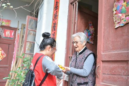 菜籽油、东北大米、香蕉、橘子……志愿者们手提“爱心粮食”,上门探望慰问老人。在抗战老兵任志和晁云清的家中,大家共享重阳之乐。“看着他们,我仿佛看见了自己远在宁夏的奶奶,我只想抱抱他们,与他们聊聊天,在我看来,这次志愿活动是非常有意义的。”信息学院17级信息二班郭凤铃深有感悟。