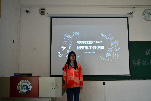 14物联网2班就支部介绍、组织建设、思想学风、团日活动、总结展望五个方面进行述职。其中,组织建设与思想学风板块中,一张张奖状涵盖了从国家级至校级的学习、科创、社会工作、文体艺术多个方面,令人钦佩;“寻找‘八一’”、“公祭日纪念”、“观看老干部演出”“爱心捐赠”等形式多样的活动充分体现了15通信卓越团支部的青春活力;16级各支部也同样积极活跃于团组织工作,开展了“学习小组”、“帮送快递”、“刷机贴膜”等各色活动服务同学,尽显团组织活力。