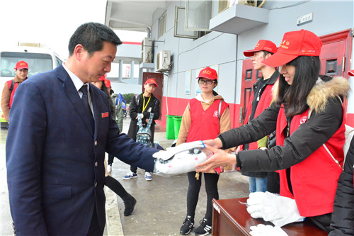 为实践雷锋精神,3月19日,世纪英才学校信息工程学院分校五期全体成员携手青年志愿者协会,头戴“小红帽”,身披红色“雷锋衣”,来到南昌市红谷滩配套中心,为公交车司机师傅们送温暖。