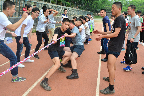 “冲啊,超过他们!”震天的呼喊声回荡在赛场上,将其余的声响尽数淹没,100米和400米的比赛中,各专业选手大步流星,奋勇向前,赛出了信息学院昂扬向上的出众风采;跳远比赛中,各个选手先通过跑道不断提升速度,最后猎豹般奋力一跃,腾空而起,在空中画出一道道靓丽的抛物线;拔河比赛中,每支队伍均由“4女12男”共16名选手组成,一同“参赛”的还有各个专业的啦啦队,啦啦队员们一同喊着“一二一”的口号来协调自己队伍的施力频率,以达到“劲往一处使”的效果。