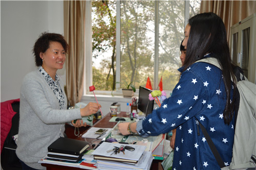 三八国际劳动妇女节之际,信息学院学生会科创部联合心素会,代表学院学生给女教职工们送去节日祝福并赠送护手霜、手工玫瑰花等爱心小礼物。