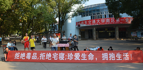 除了行为艺术展,路过的同学还在横幅上签上了自己名字,表示要拒绝手机,更要远离毒品。