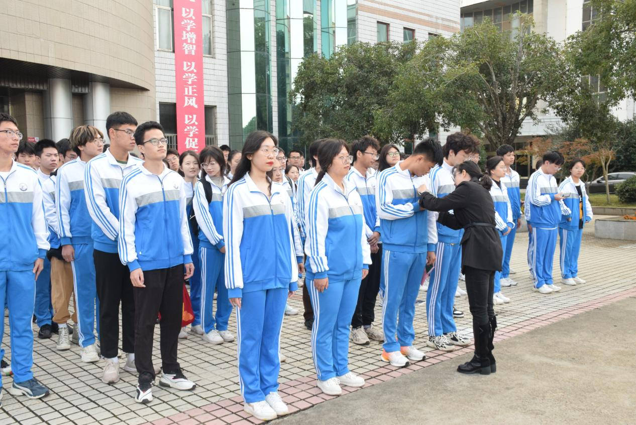 信息学院团委李萌萌为新团员佩戴团徽