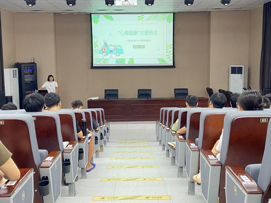 为深入推进学校心理健康教育,进一步提高学生的心理健康素质,培育学生理性平和、乐观向上的健康心态,促进学生身心健康发展。10月8日-10月12日,信息学院研究生辅导员叶生涛、刘妮召开研究生“心理健康”教育主题班会,全体研究生参加此次班会。