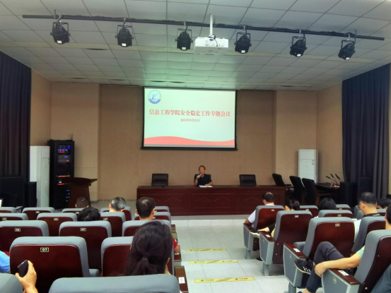 9月21日,信息工程学院于教5栋108校友报告厅召开安全稳定工作专题会议,院党委书记何仲坚主讲,全体教职工参会。