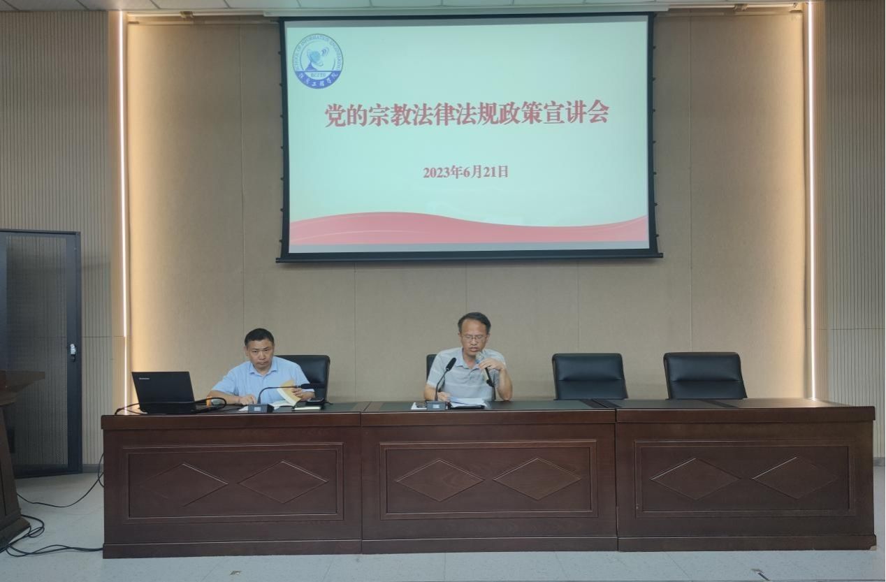 为广泛宣传党的宗教法律法规,6月21日,信息工程学院于教5栋108校友报告厅召开党的宗教法律法规政策宣讲会,院党委书记何仲坚主讲,全体教职工参会。
