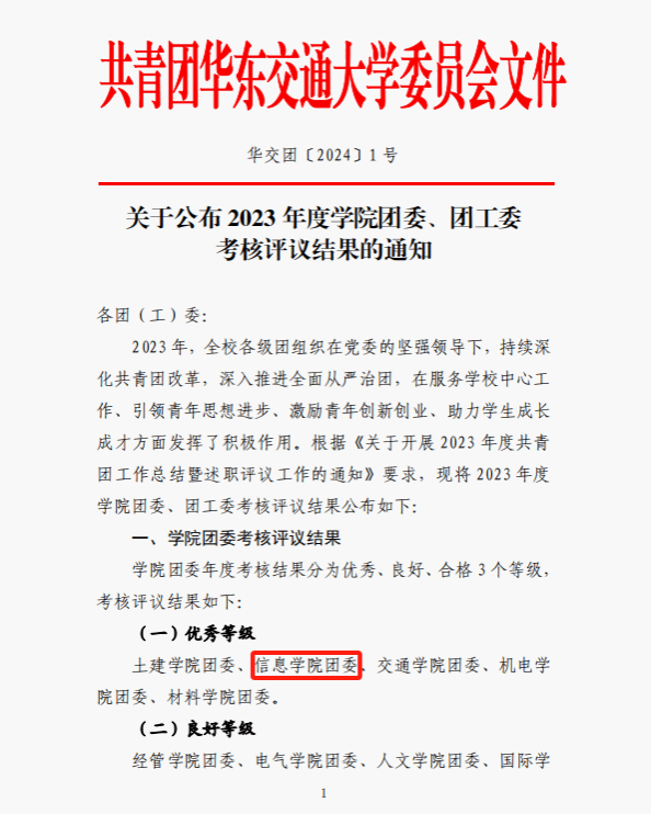近日,校团委印发《关于公布2023年度学院团委、团工委考核评议结果的通知》,信息工程学院团委荣获优秀等级。