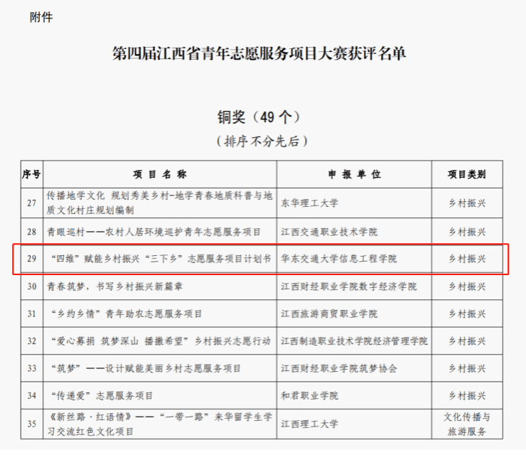 申报的“四维”赋能乡村振兴志愿服务项目在决赛中取得取得铜奖的好成绩,实现了学院在该项赛事中零的突破!