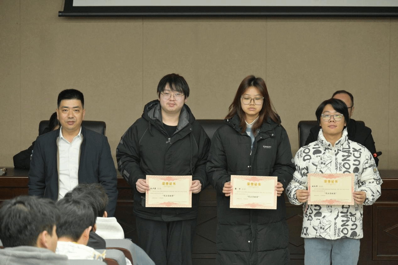 魏永峰为第五届校运会“突出贡献奖”获得者颁奖