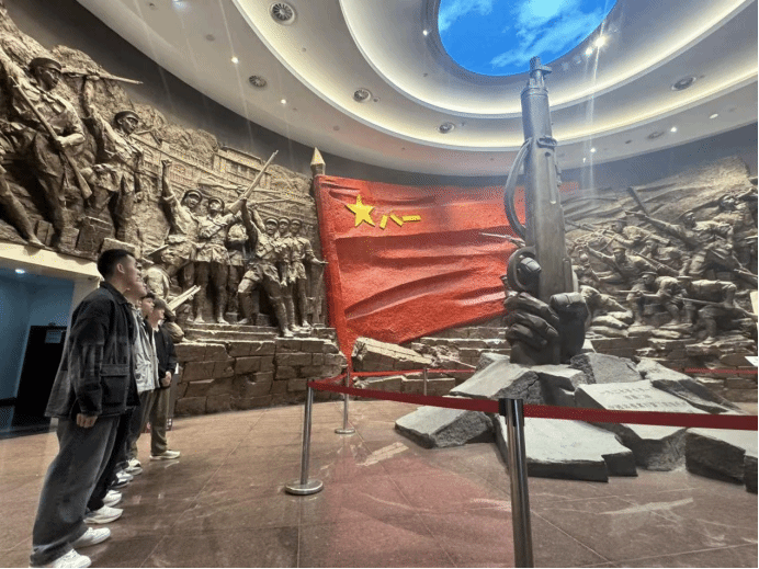 当同学们站立在八一馆的前厅仰望着八一军旗,心中充满对先辈们的敬意。沿着长廊走进陈列革命烈士图像的展馆,同学们阅读着英雄们的壮烈事迹,仿佛回到了那个战火纷飞的时代,深深感悟那段峥嵘岁月里的热血与信仰。